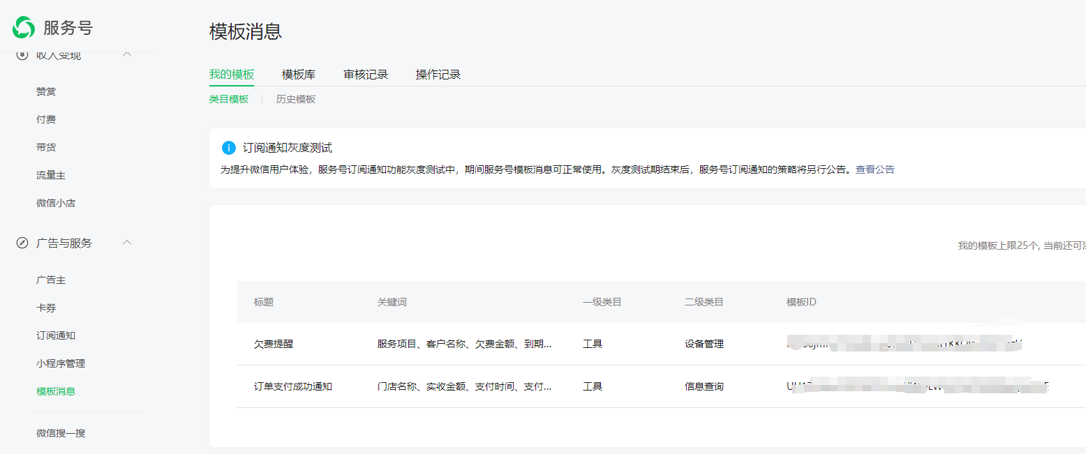 服务号使用的是模板消息的这个,调用后报错这个是前端也需要类似订阅消息这样吗
