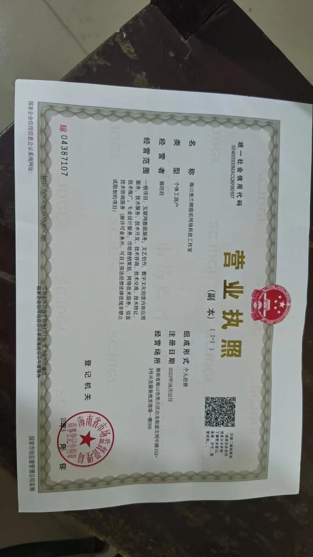 这是新办的营业执照