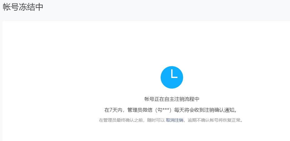 今天已经是第七天了,之前提示说每天将会收到注销确认通知,现在7天一次也没收到呀,慌了