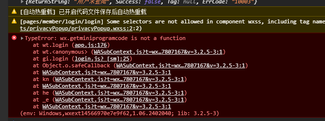 把wx.login改成wx.getMiniProgramCode 提示方法不存在,怎么查?