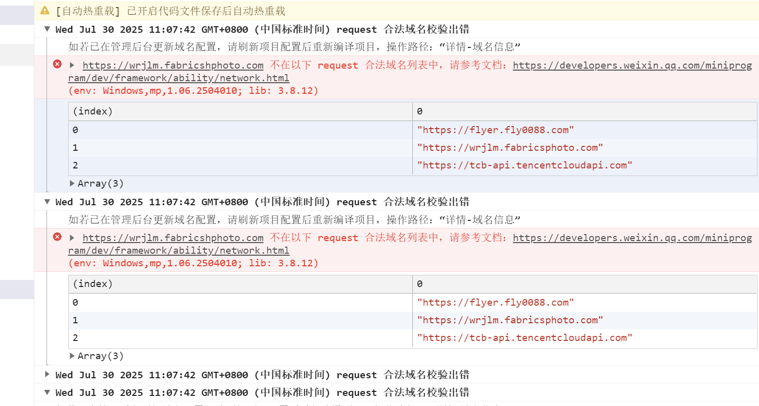 可以仔细看下,代码里面的域名和后台配置的域名不一致哦。