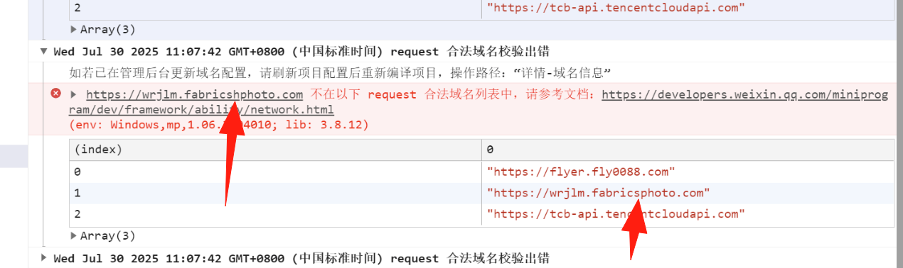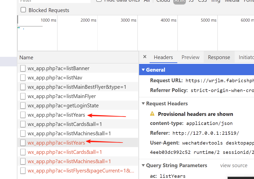 如下图1,同样的接口 listYears 在首次进入页面的时候是可以有返回的,在点击进入第二页时显示显示不在request合法域名当中