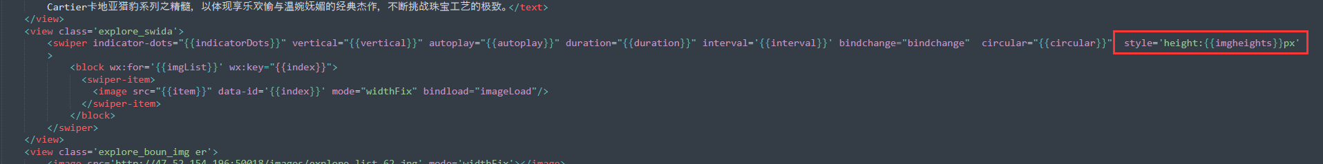 能看下你的wxml结构在style='height:{{imgheights}}px' 位置解析出来是多少吗