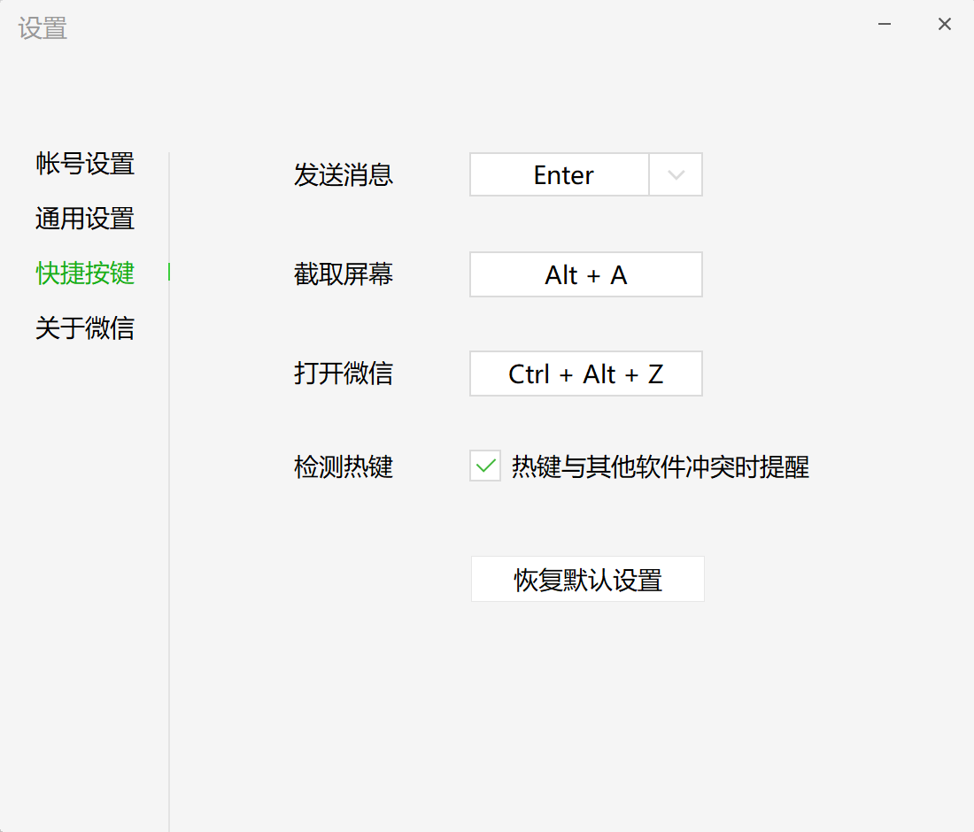 在微信PC客户端中,最近突然无法用回车键发送消息(快捷按键设置中 enter或Ctrl+enter 都试过),只能用鼠标点击发送键。 此前一直是正常的,目前故障现象已持续近1周。