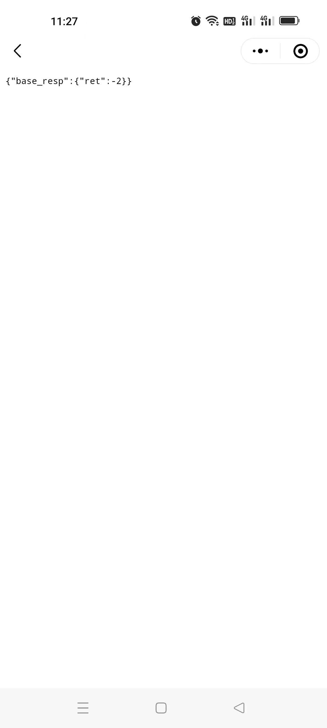小程序登录页面为嵌套的<web-view>标签,进入的页面是一个静态页面,未调用接口,有引用微信依赖包(https://res.wx.qq.com/open/js/jweixin-1.6.0.js),从小程序"我的"页面点击"退出登录"按钮,页面显示{"base_resp": {"ret": -2}},问题偶现,已经开启了不校验合法域名、业务域名的设置,整个流程除了加载依赖包和图片,没有调用别的接口,有大佬出现过类似的问题吗?