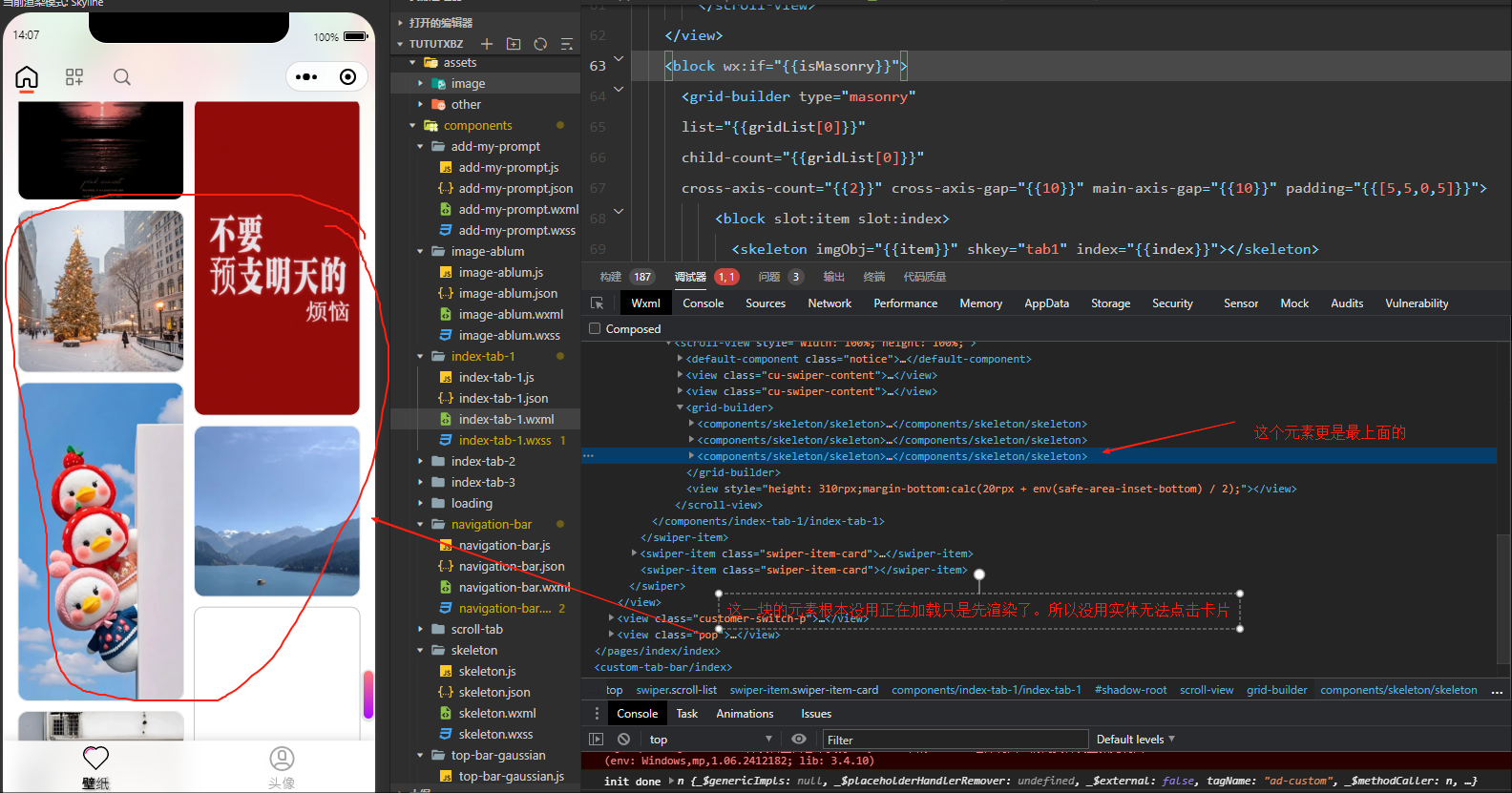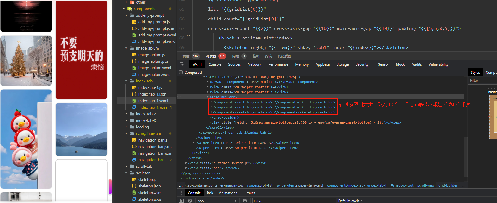 所以grid-builder组件 的瀑布流模式,在渲染方面有非常大的BUG。之前没有,后面出来的。试了目前所有最新的基础库,都是这样!