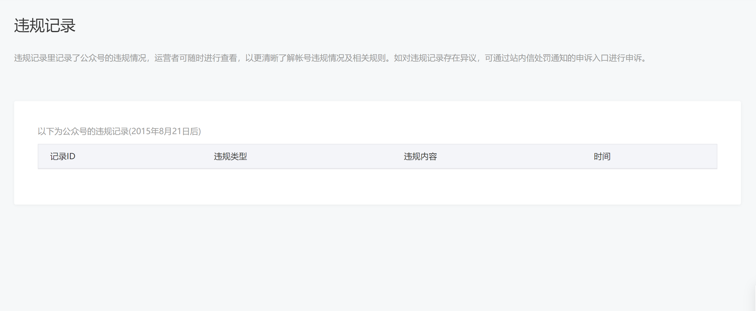 2、违规记录为空: