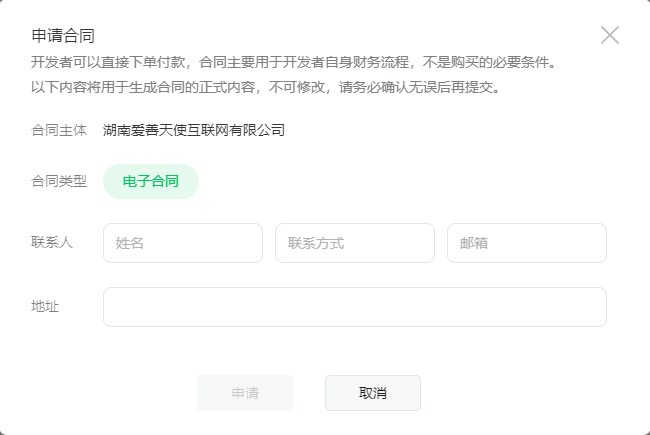 付费管理->全部订单页面的申请合同显示的合同主体跟小程序主体名称不一致,这个要怎么解决?
