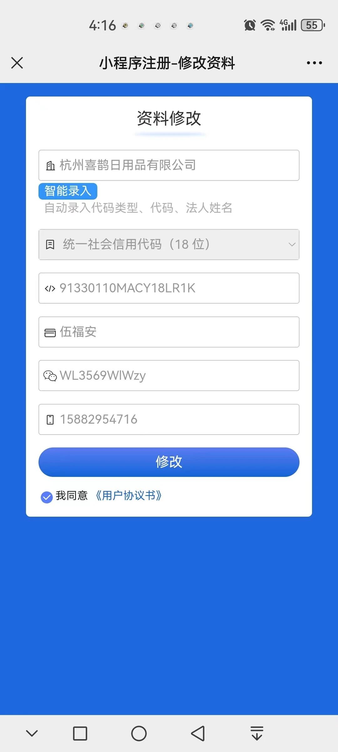法人微信号两个都试过了WL3569wlWzy 和XQCJJYB执照名称杭州喜鹊日用品有限公司代码91330110MACY18LR1K
