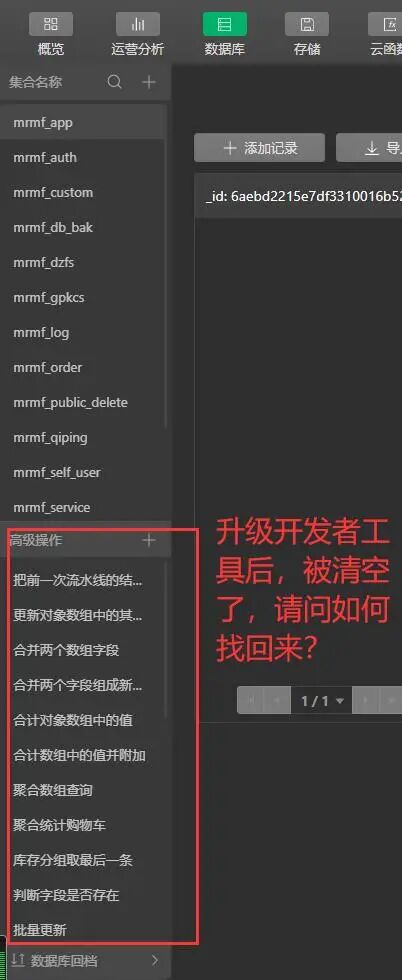 升级开发者工具后,控制台,数据库,高级操作中原来的查询语句丢失了?请问如何找回来