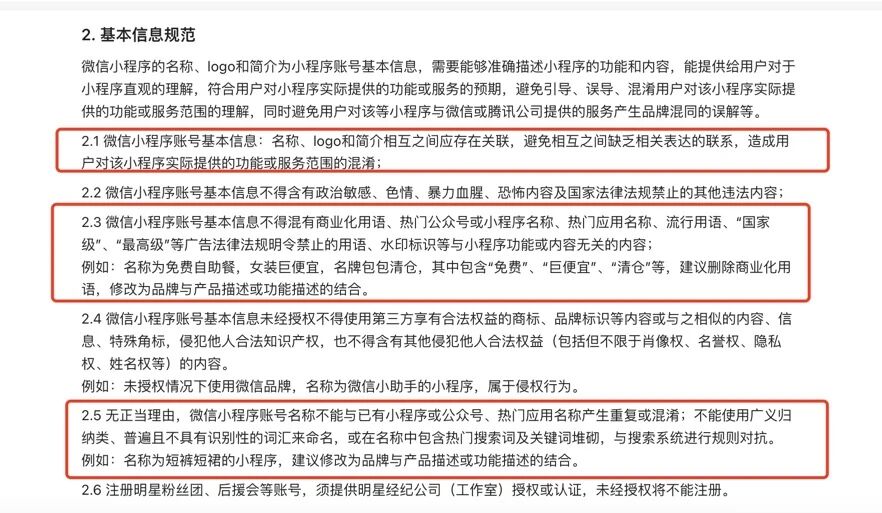 https://developers.weixin.qq.com/miniprogram/product/#_2-%E5%9F%BA%E6%9C%AC%E4%BF%A1%E6%81%AF%E8%A7%84%E8%8C%83