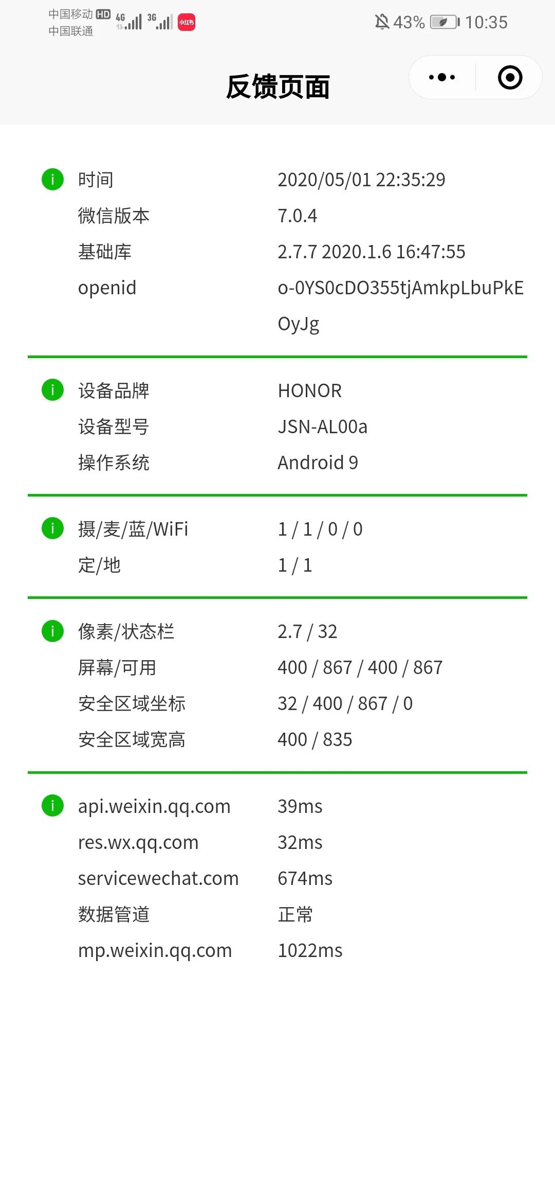 荣耀8X机型上,打开体验版微信小程序提示“运行环境加载失败(2, 101)”, 线上暂未收到反馈。