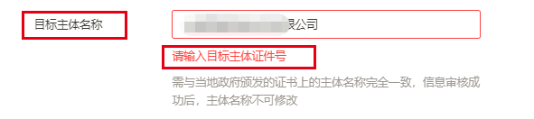 同样遇到这个问题,第一次提审没出现,重新提审就一直提示“请输入目标主体证件号”