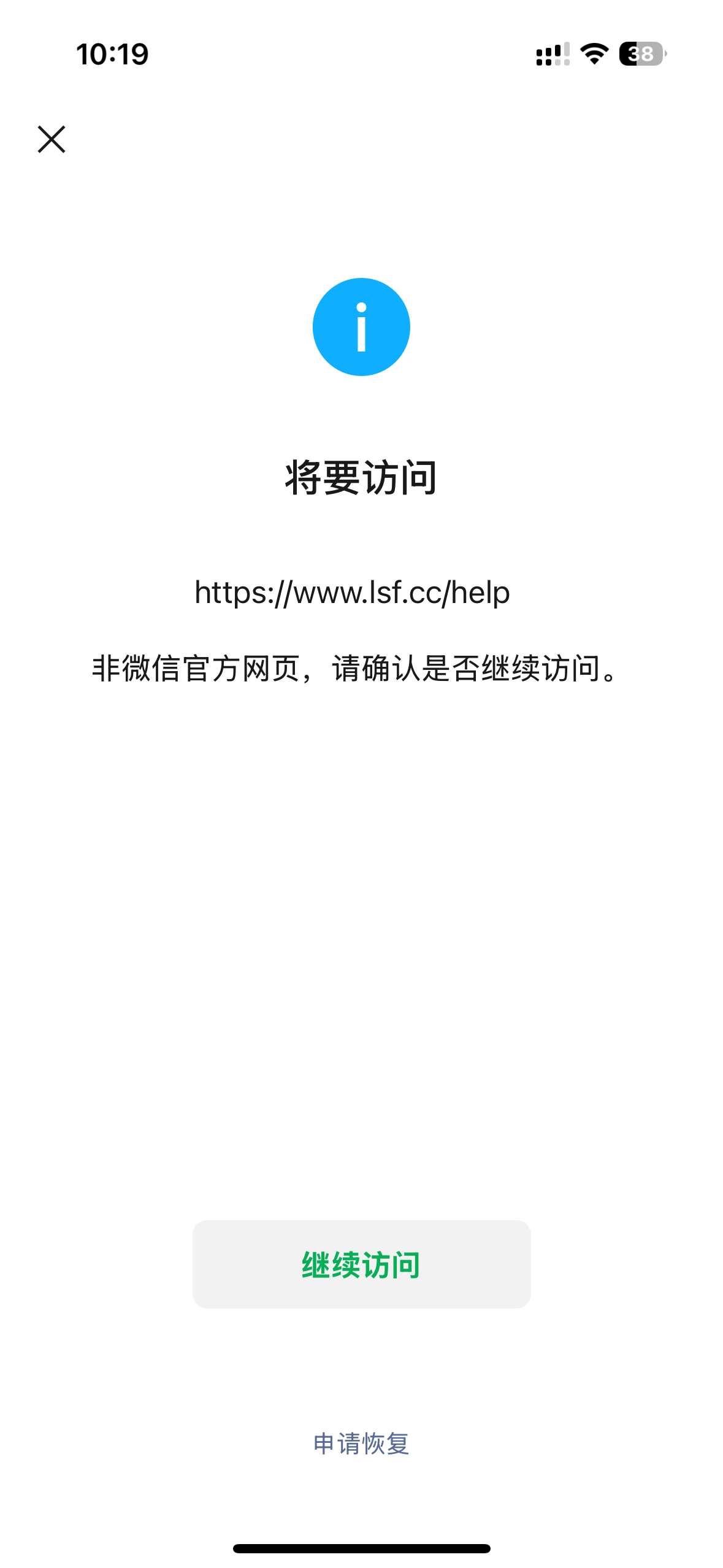 社区技术专员,您好,公司网站(https://www.lsf.cc),在微信里访问会提示非微信官方网页,请确认是否继续访问。lxf.cc该域名已备案,请帮忙帮忙处理下。