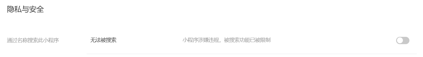 该小程序未备案或者备案通过。会限制‘被搜索’能力,等你备案通过就会自动解除限制。