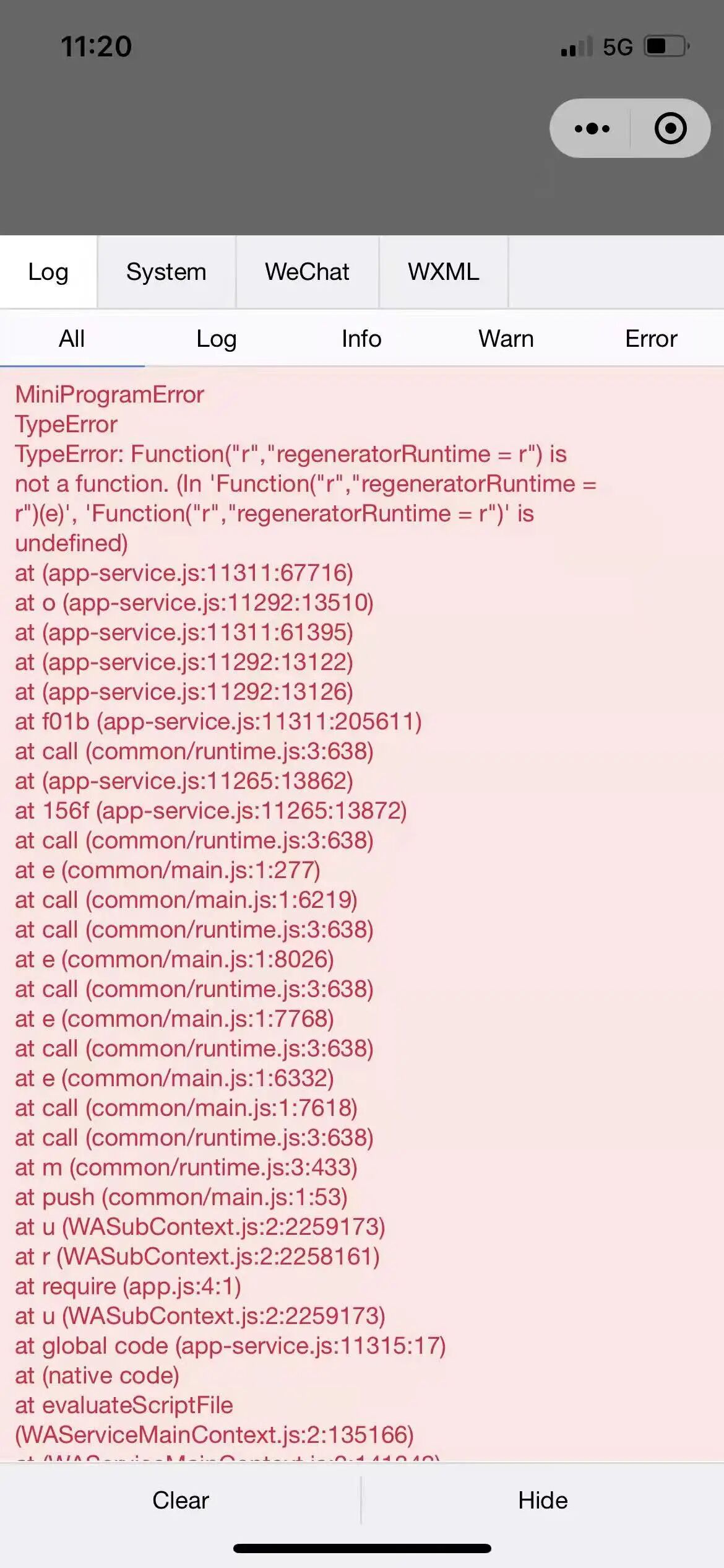 若使用了第三方框架,则需要排查第三方框架的编译是否正确注入 regeneratorRuntime。