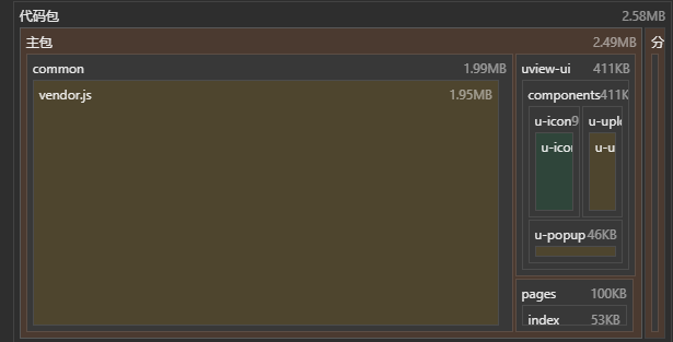 用Hbuilder x编译的,运行时请勾选‘运行时是否压缩代码’,如果是用运行命令的请加上--minimize,发布命令是会自动压缩代码的,另外开发工具勾选上传时压缩代码,如果这还不行就分包吧