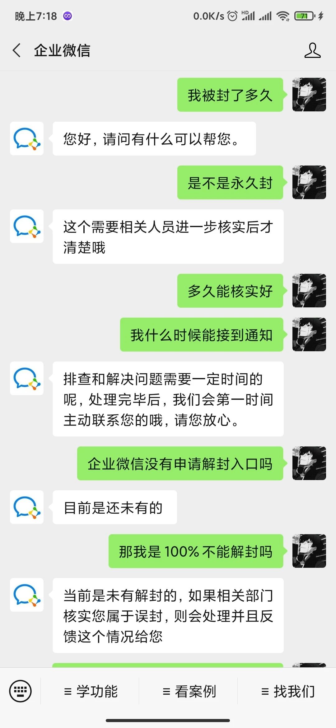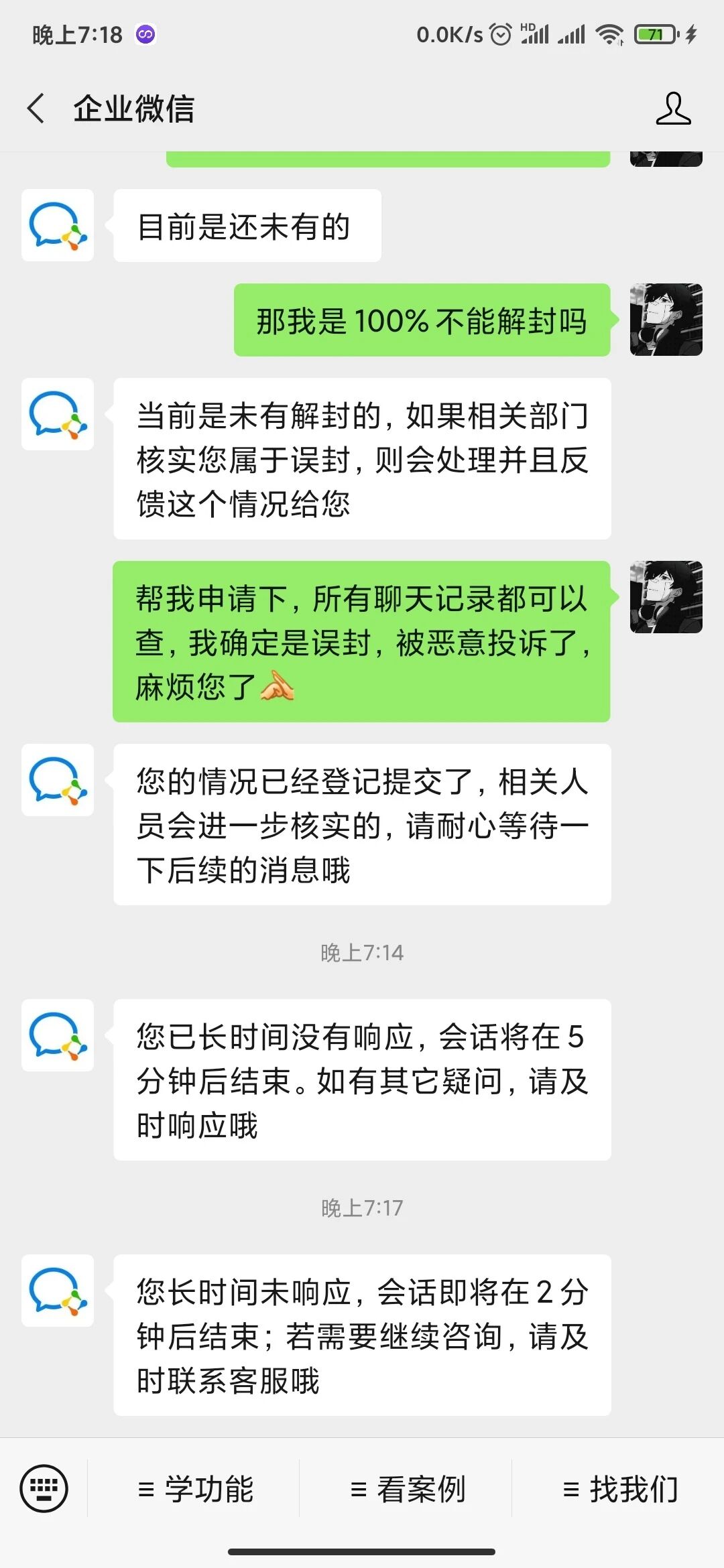 正常零售行业被恶意投诉导致账号封禁,没有刷单却被以刷单理由封掉,以前个人微信也是经常莫名被投诉封掉以为换了企业微信会有改善,还是被会被恶意投诉封号,联系人工客服无法得知被封时长是否永久封,不知是否可以解封客服也发了规则给我看首次短期封禁?我想问短期是多久呢