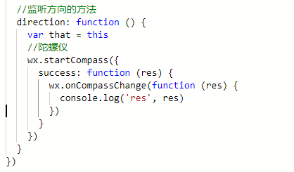 wx.startCompass({success: function(){ wx.onCompassChange(function (res) { console.log(res.direction)})}})