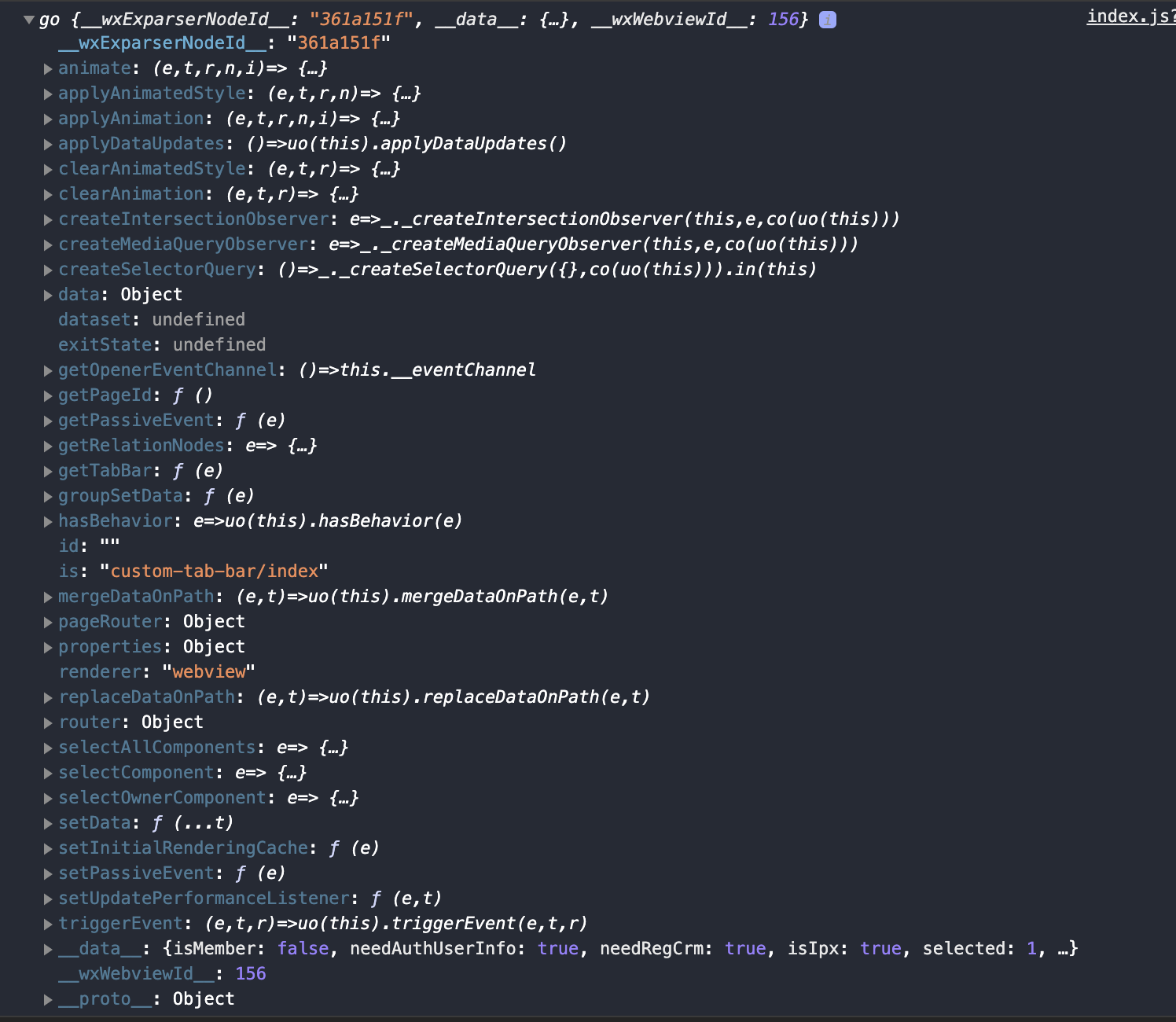 1.this.getTabBar()实例中只看到自定义的data数据,而没有methods中自定义的方法?