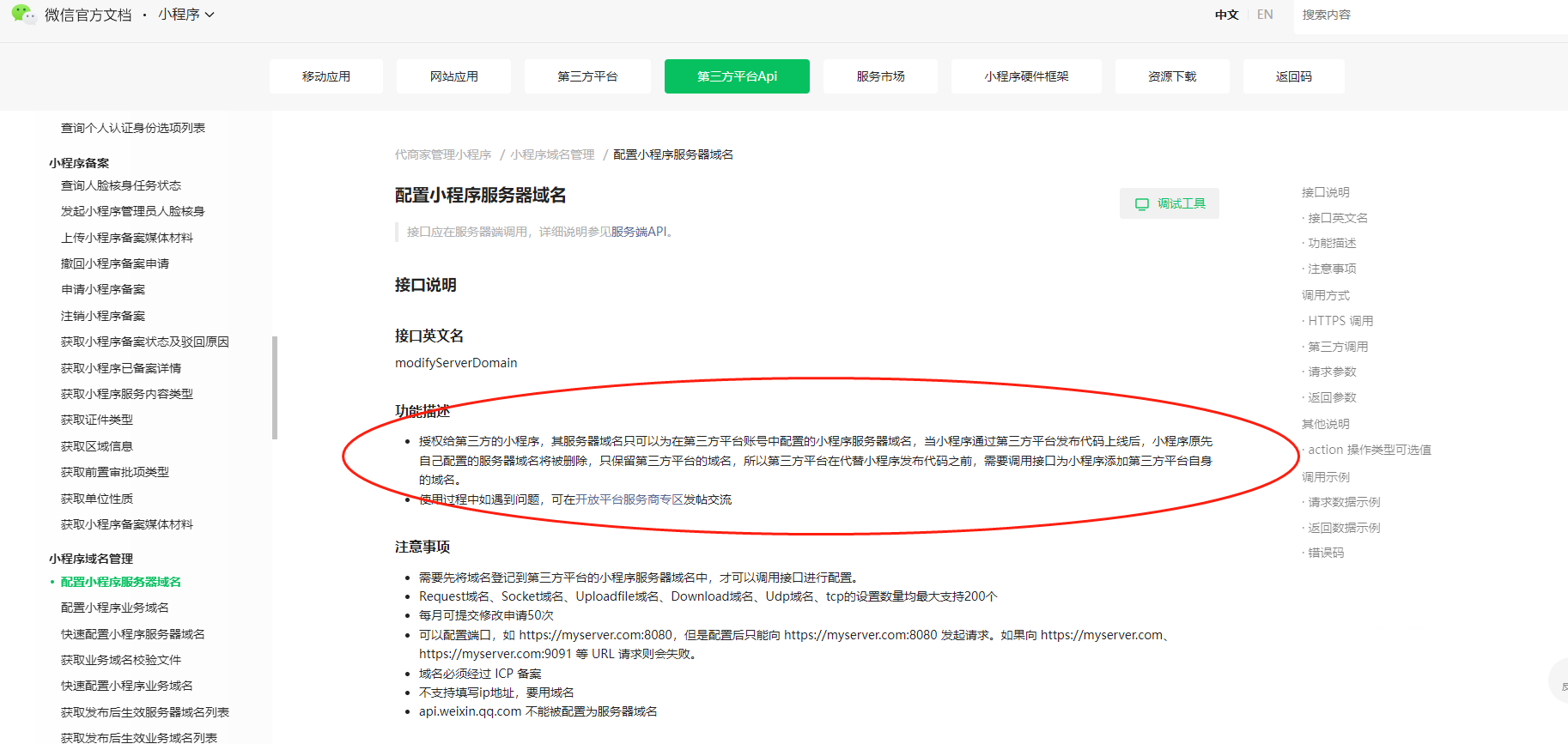 https://developers.weixin.qq.com/doc/oplatform/openApi/OpenApiDoc/miniprogram-management/domain-management/modifyServerDomain.html