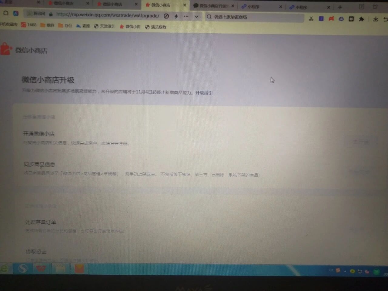 微微信小商店想要升级为微信小店,升级按钮都是灰色的的。无法进行快速升级,小商店助手回复让在这里面发帖求助组件部门