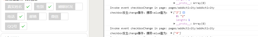 console.log('checkbox发生change事件,携带value值为:', e.detail.value)
