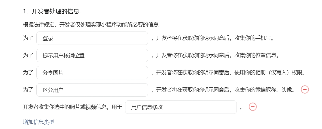 你好,建议针对不同的隐私接口分别详细描述下具体使用说明后重新提交。(特别是标注仅写入相关的隐私接口描述:仅写入,无读取)