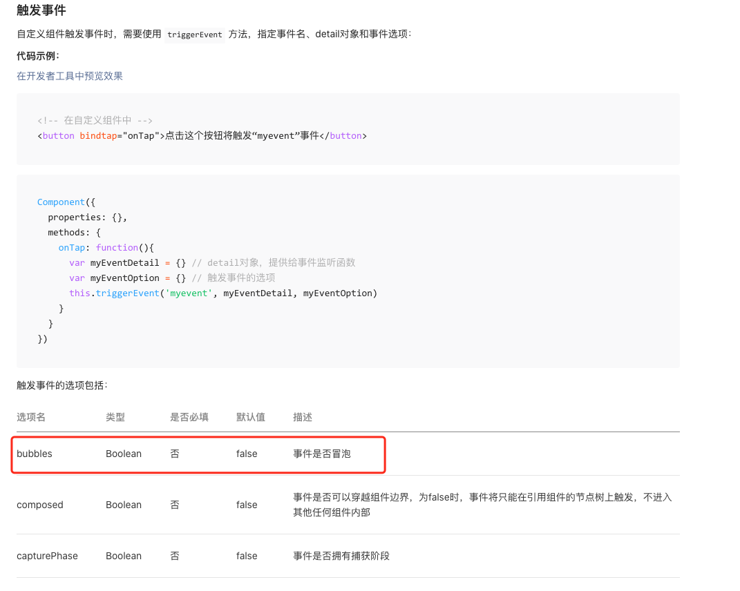 参考文档https://developers.weixin.qq.com/miniprogram/dev/framework/custom-component/events.html中关于事件向外层传递的描述
