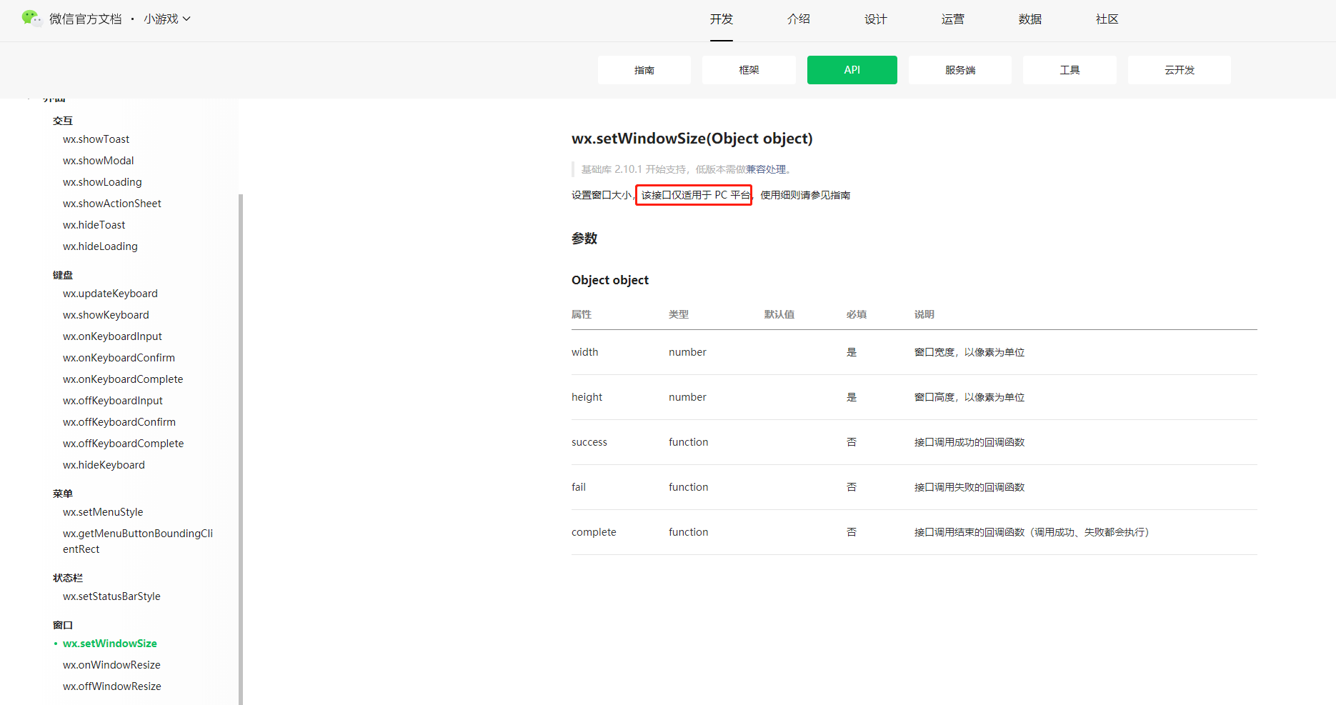 相同的代码在微信2.9.0.34调用返回{"errMsg":"setWindowSize:fail:illegal parameter."},看文档上参数说明也没有变化,微信升级后,此接口参数有变化吗?