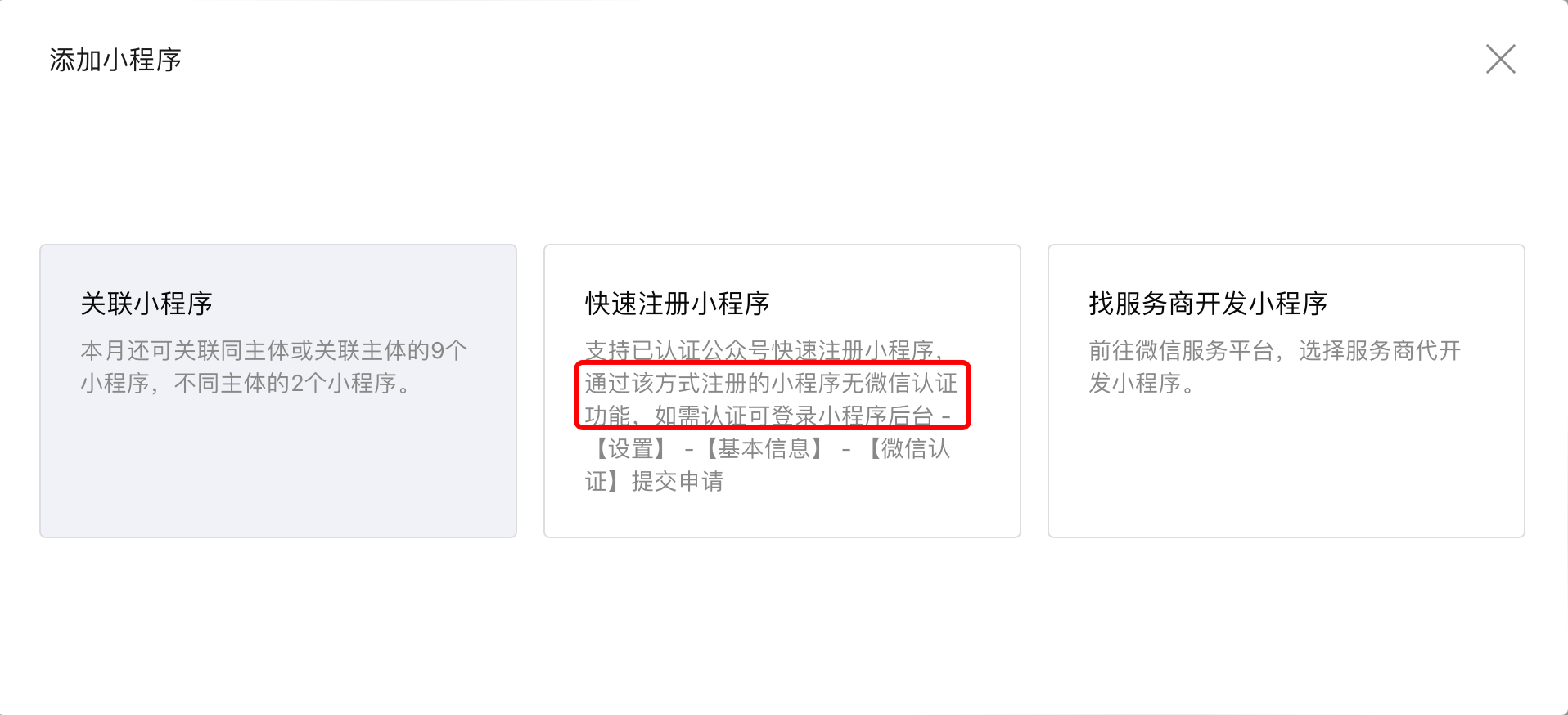 你可以将公众号与小程序关联起来,然后免费复用公众号微信认证资质给小程序(前提是小程序与公众号为同一主体)。