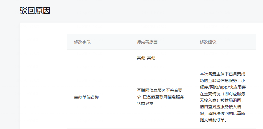本次备室主体下已备室成功的互联网信息服务:小程序/网站/app/快应用存在空壳情况(即对应服务无接入商)被管局退回,请自查对应服务接入情况,请解决该问题后重新提交当前订单。名下备案的程序是能正常搜索能正常访问的。怎么会出现这个情况呢?
