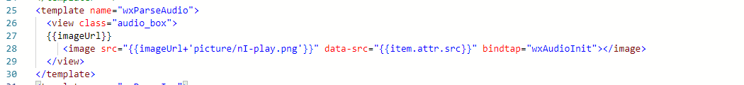 目的:想把wxparse.js 里的数据(如imageUrl) 绑定到wxparse.wxml 里 求教大神 正确是如何写的 想做个 音频播放功能