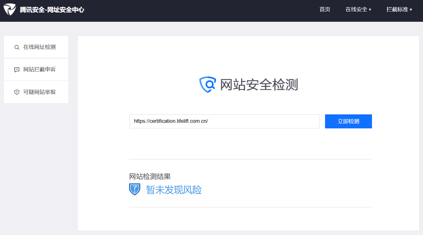 您好,我是网站开发者,网址https://certification.lifelift.com.cn/ 和 https://mall.lifelift.com.cn/ 浏览器访问正常,域名lifelift.com.cn备案完成,且在"工业和信息化部政务服务平台"上能查询到备案信息,腾讯安全网址安全中心检测无问题