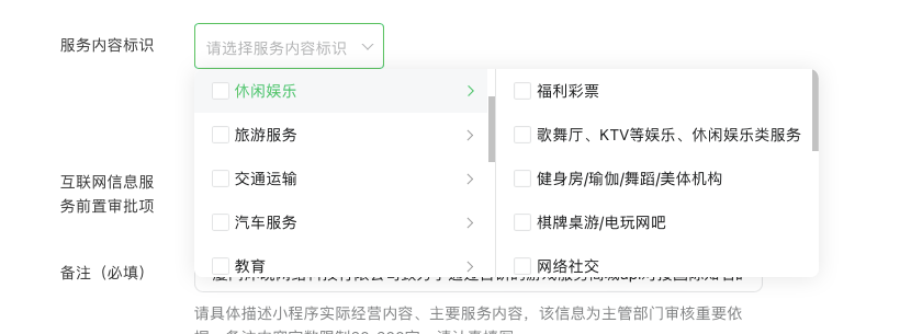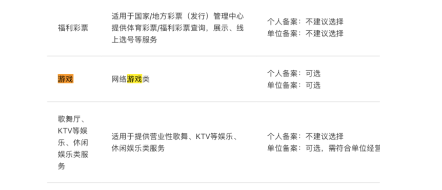 小程序备案过程中,选择服务器内容标识-休闲娱乐类目中没有游戏选项;小程序备案服务内容标识选择指引中是有该类选项的;