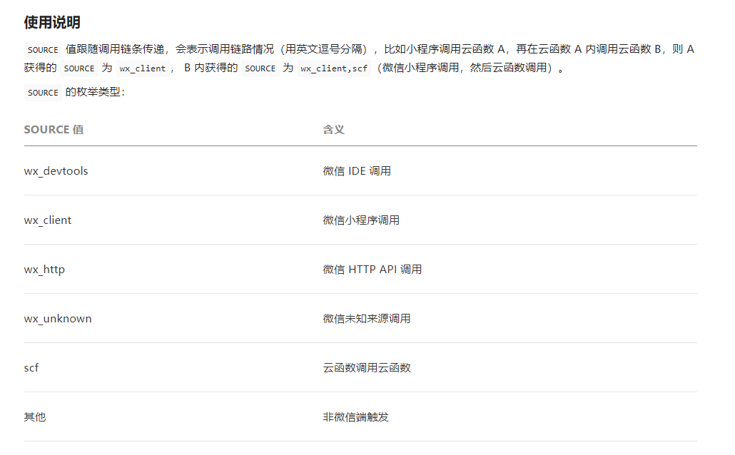 getWXContext()相关文档中关于SOURCE未列举全,暂时发现的有wx_trigger、wx_crawler未说明,请求完整版说明。