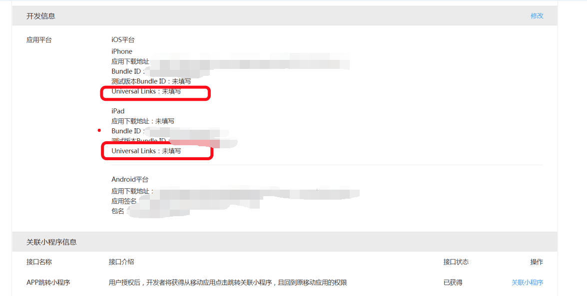 微信开放者平台修改已创建好的应用的 Universal Link参数(先前未配置过) ,是否会影响线上版本的分享和微信支付(是否涉及到Universal Link参数校验问题)?线上版本集成是旧版SDK1.8.0