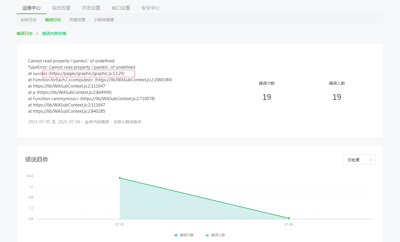 小程序6月30号更新了新的版本,和老版本是不同公司开发的,但是在6号查到的报错日志还是老版本的错误!这个页面路径,新版本小程序根本就没这个路径