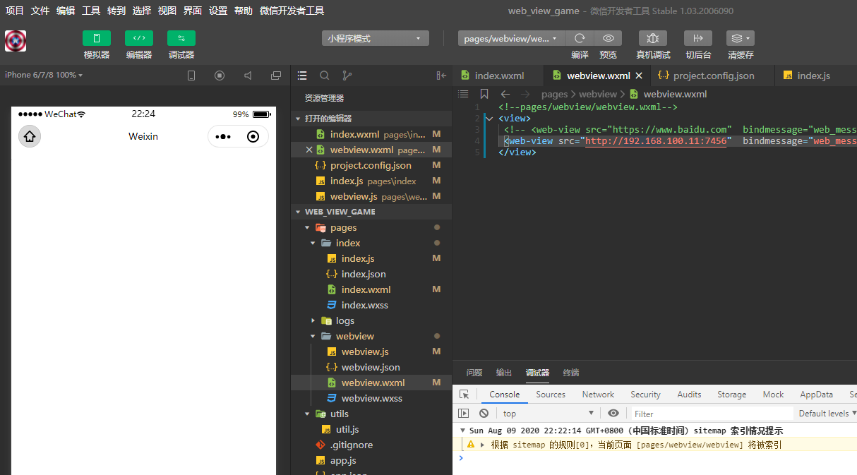 开发者工具已经更新至最新版本,不检验合法域名选项已勾选,真机调试模式下可正常加载H5页面,微信开发者工具加载始终白屏,无任何报错信息,webview也无任何回调日志