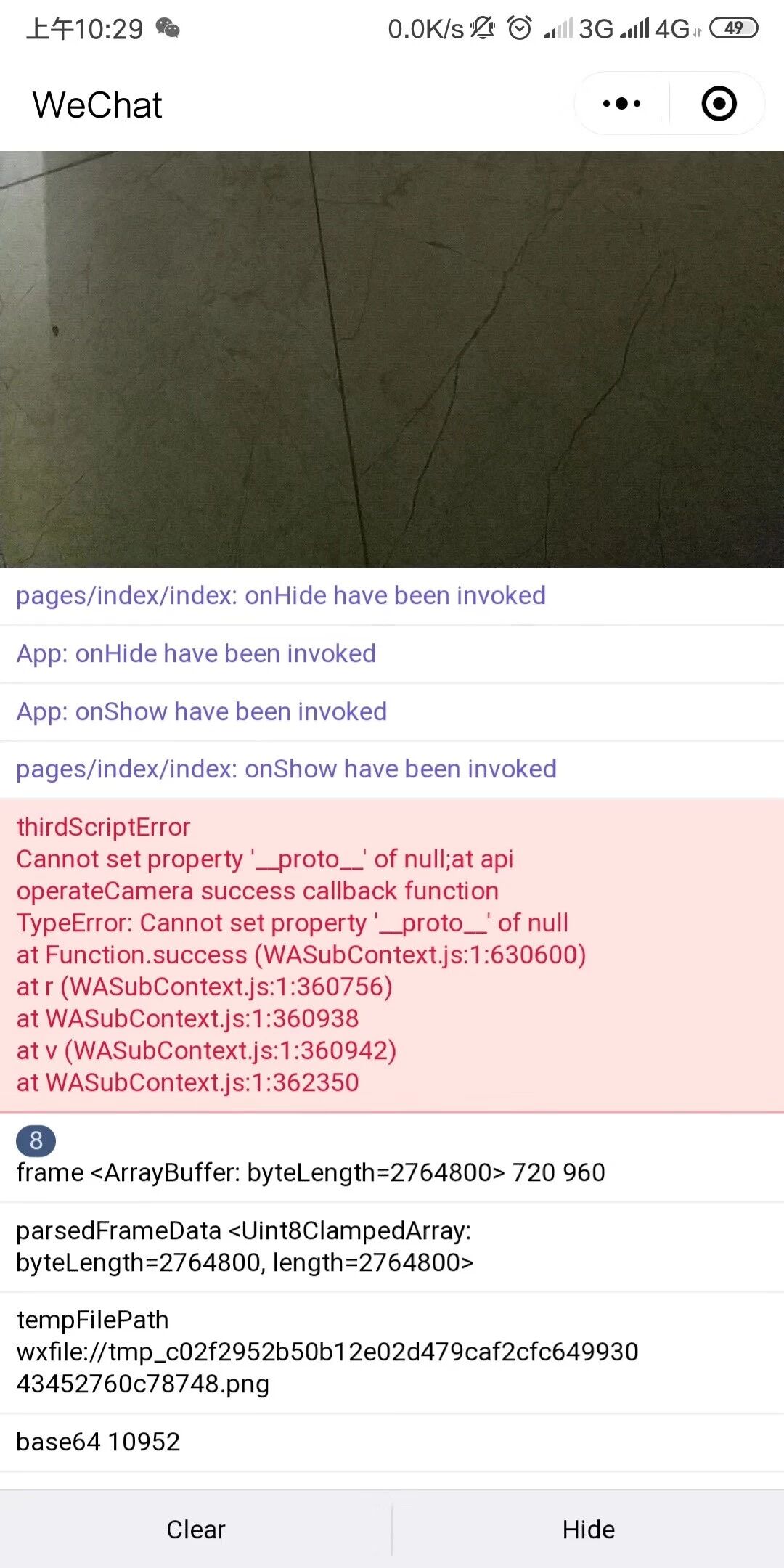我现在是用 canvas 的 putImageData,但是我发现导出图片用canvasToTempFilePath拿到res.tempFilePath有时会报上面这个错误,有时候又是正常,我没有用operateCamera也不会去操作它得proto,不明白什么情况