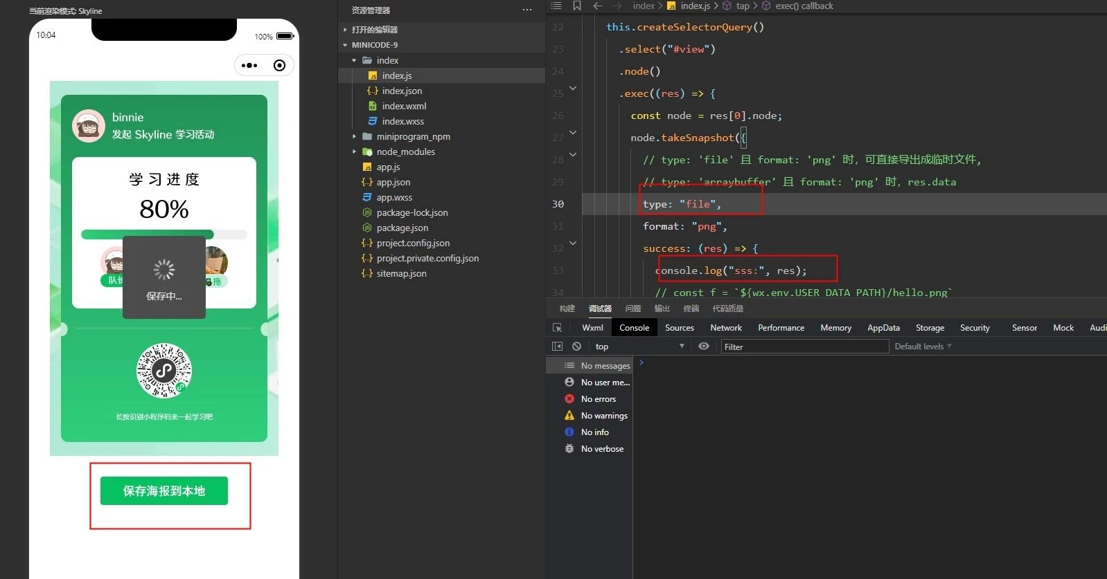 takeSnapshot方法的success,fail,complate方法均不执行,页面卡住