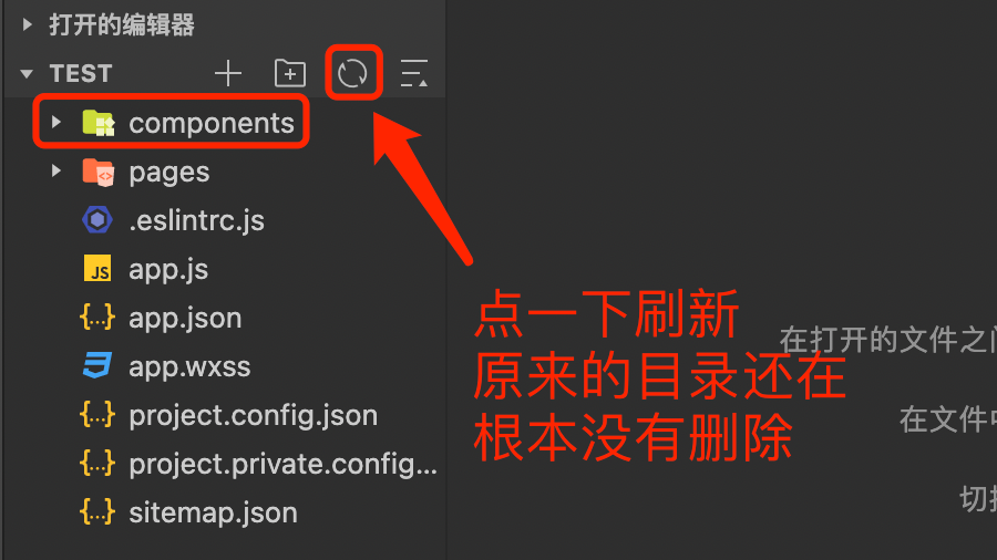 3、点击刷新目录,被删除的目录又回来了,根本没有删除