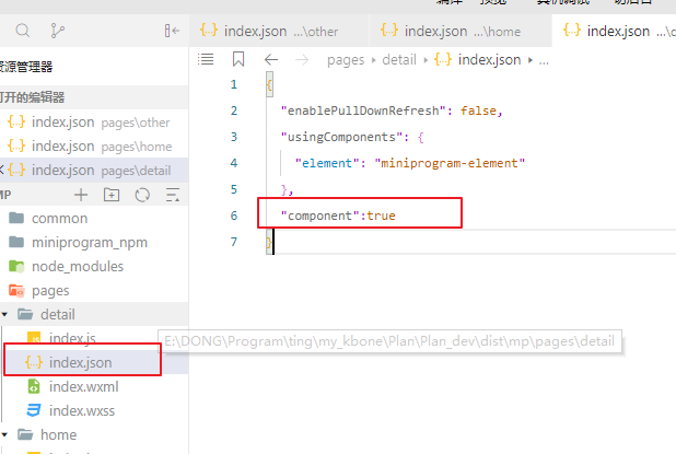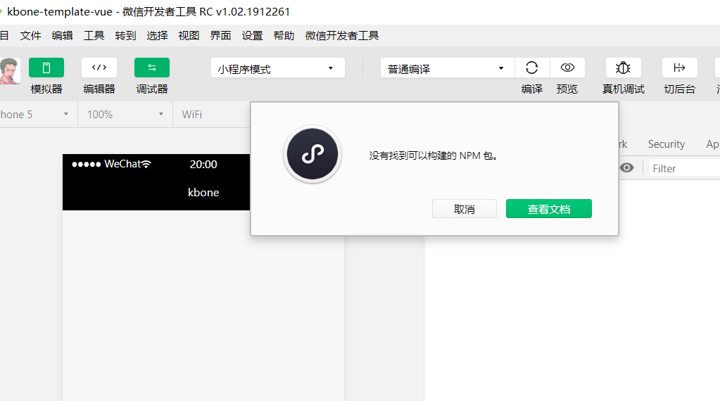 开发者工具导入项目--工具--构建npm--编译