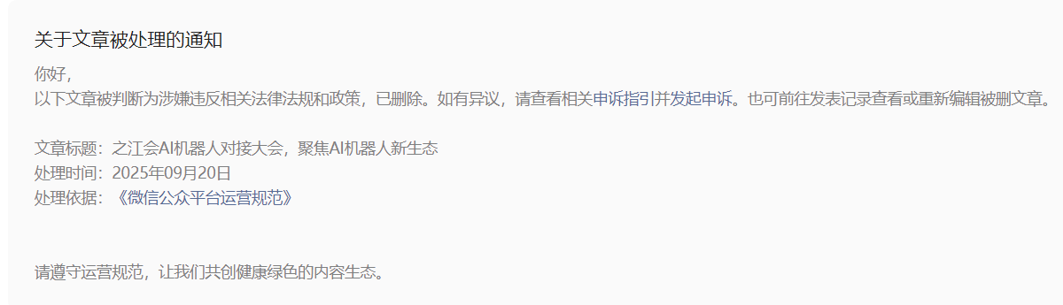 麻烦告知具体违反了什么法规和政策,下次发文的时候可以规避,谢谢~