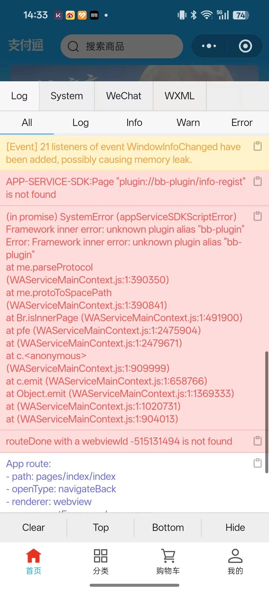 但是上传代码并扫描体验二维码后报错截图如下,为什么一直报错这个插件不存在啊?导致插件页面就报错页面不存在