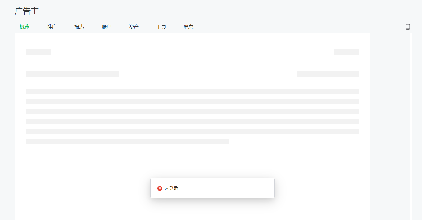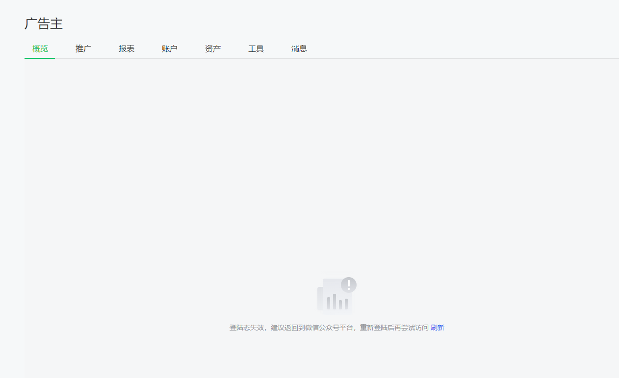 后台广告主功能不可用,点击广告主提示未登录,在最近更新后台后出现这个问题,就单这个账号,其他账号正常使用。
