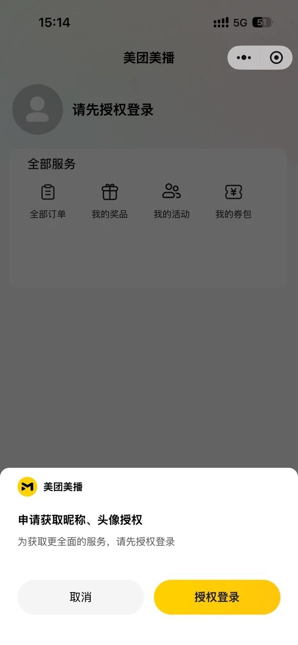 如图,自从微信小程序回收用户头像和昵称的授权机制后,官方给出的操作流程都是通过button和input的open-type来获取用户头像和昵称,但是美团美播小程序似乎找到了其他的方法,这是调用的什么api呢