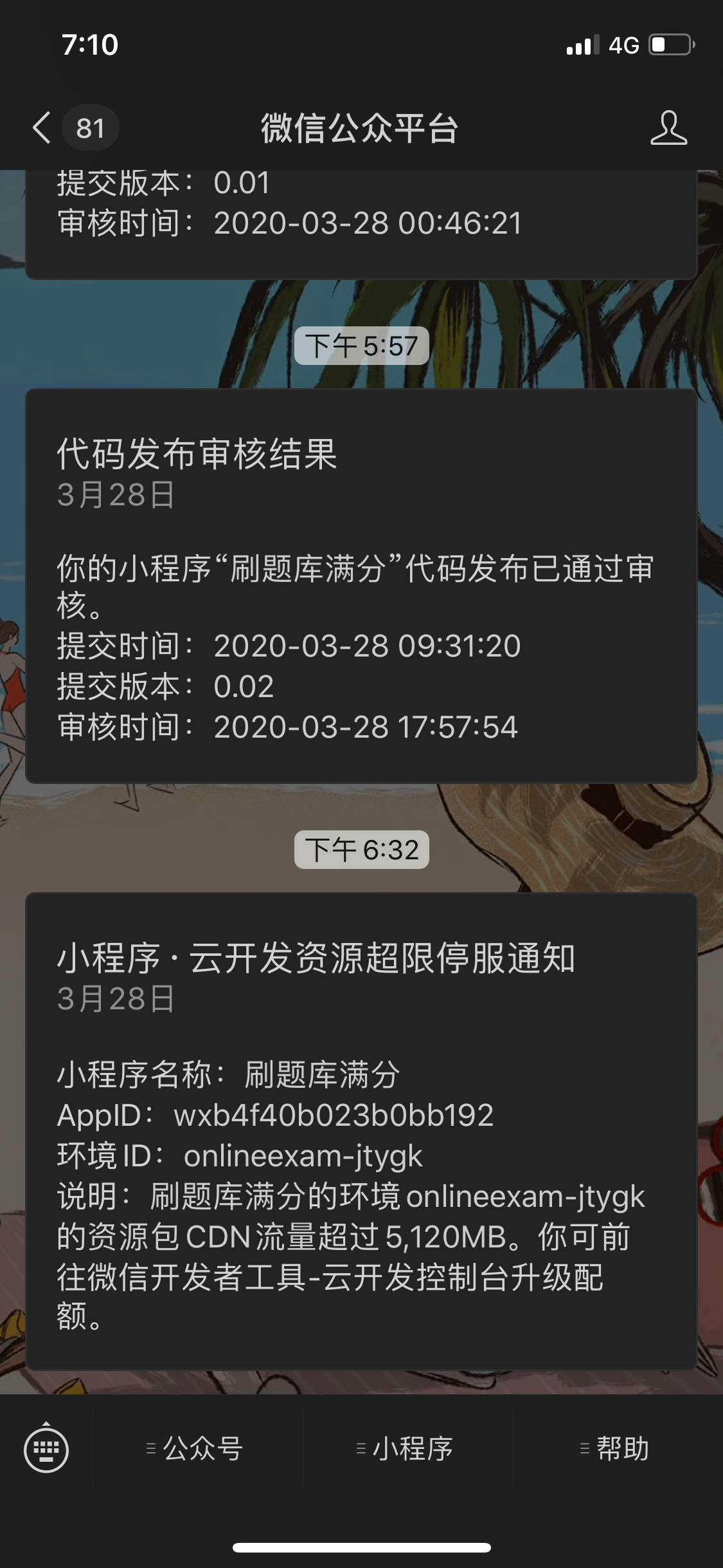 这个貌似突然增加了很多访问量,微信给你的提示我也接到过。就是按照当前速度会迅速耗费完你的资源,然后就先给你发个提醒了。图片可以放在七牛上或者腾讯cos 上阿里oss上