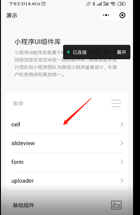 微信版本:7.0.10 手机:小米9 Pro 5G 系统:MIUI 11.0.3 问题:页面使用扩展组件cell在真机调试时无法显示导致整个页面“白屏”,使用官方的Demo小程序实例可复现此问题。是哪里的问题呢?