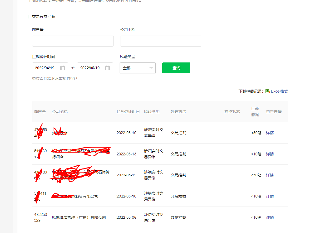 补充 通过微信支付后台是可以查询到 且是存在 商户违规记录的